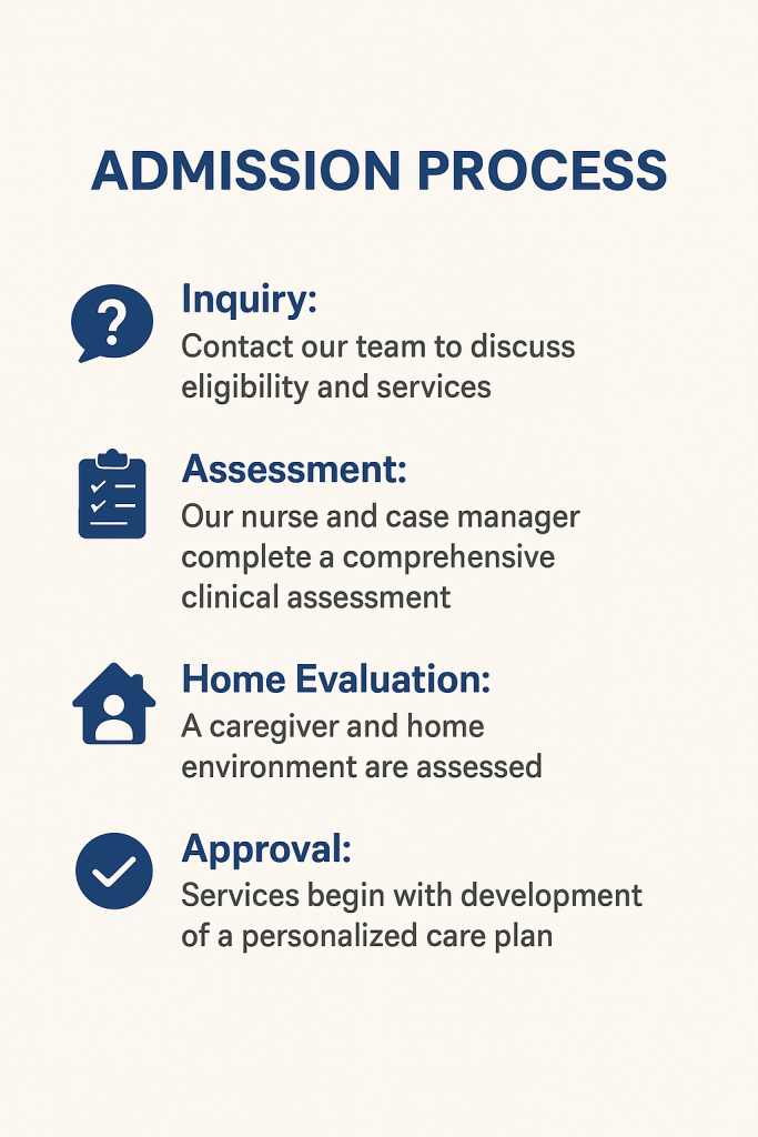 - Eligibility is determined through a comprehensive nursing and social work assessment.